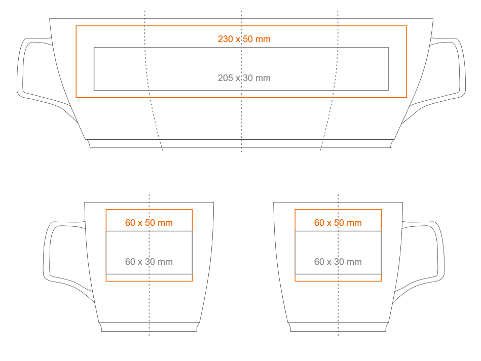 * W przypadku projektów wybiegających poza standardową powierzchnię nadruku prosimy o kontakt z działem handlowym.
